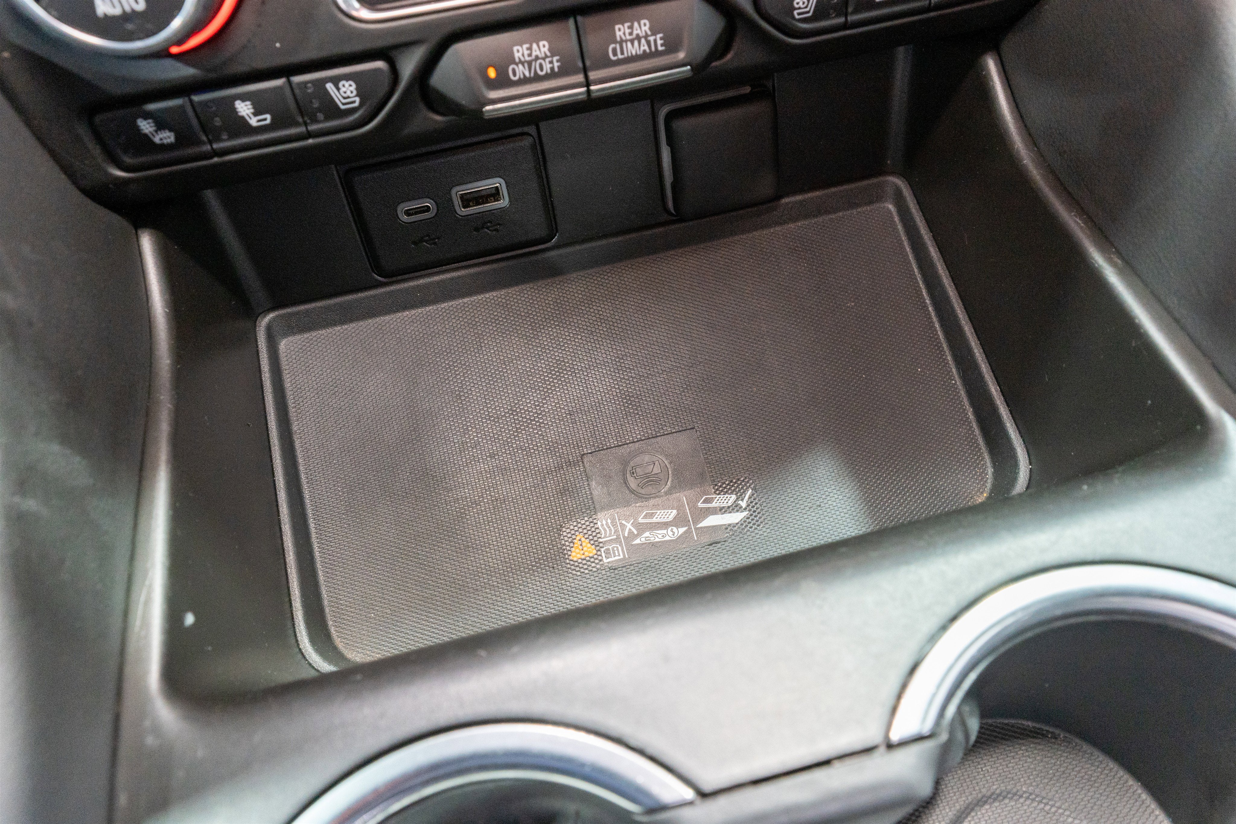 - Console, floor, power-sliding center with drawer, secure storage, manual sliding armrest and cup holders for second row; deletes (USR) USB data ports (Deleted when (ATT) second row power 60/40 split-folding bench seats are ordered.)