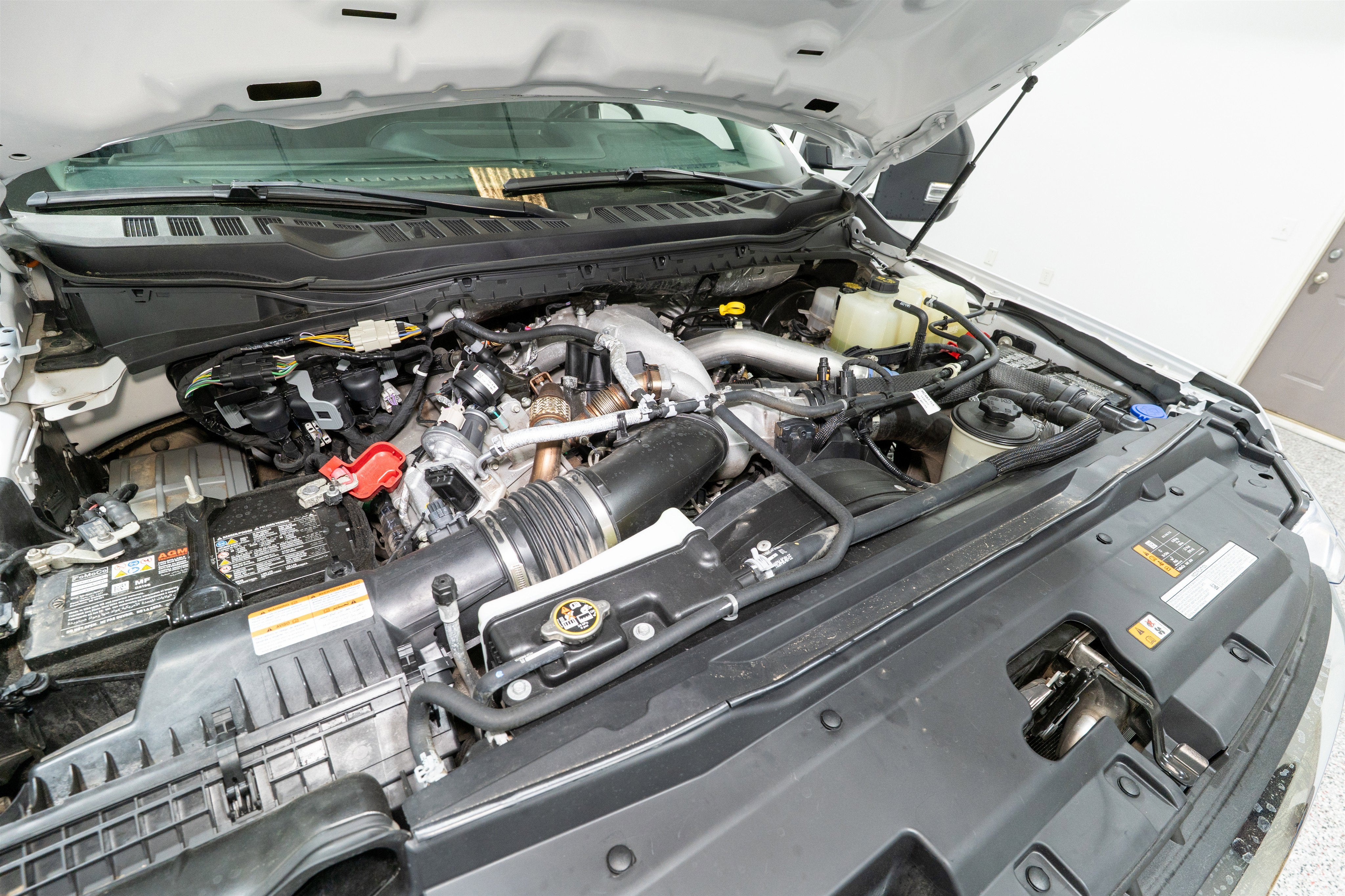 SNOW PLOW/CAMPER PACKAGE -inc: computer selected springs for snowplow application and slide-in camper certification, Note 1: Salesperson's source book or Ford RV trailer towing guide should be consulted for specific trailer towing or camper limits and corresponding required equipment, axle ratios and model availability, Restrictions apply; see Supplemental Reference or Body Builders Layout Book for details, Expect firmer ride when vehicle is not equipped w/snowplow and/or camper, Note 2: May result in deterioration of ride quality when vehicle is not equipped w/snowplow and/or camper, Note 3: Dual battery (86M) recommended w/6.8L or 7.3L gasoline engines; see Body Builders Layout Book for details, Rear Stabilizer Bar & Auxiliary Springs, 190 Amp Alternator, FX4 OFF-ROAD PACKAGE -inc: Hill Descent Control, Off-Road Specifically Tuned Shock Absorbers, front/rear, Transfer Case & Fuel Tank Skid Plates, Unique FX4 Off-Road Box Decal , POWERSCOPE TRAILER TOW MIRRORS W/HEAT -inc: power-folding w/Autofold, telescoping, power glass, turn signal, high-intensity LED security approach lamps and utility lighting system (LED side-mirror spotlights), ENGINE: 6.7L 4V OHV POWER STROKE V8 TURBO DIESEL B20 -inc: manual push-button engine-exhaust braking, Operator Commanded Regeneration (OCR) and intelligent oil-life monitor, 34 Gallon Fuel Tank, 3.31 Axle Ratio, Dual 68 AH/65 AGM Batteries, ELECTRONIC-LOCKING W/3.31 AXLE RATIO, DEFROST W/FIXED & PRIVACY GLASS, Wireless Phone Connectivity, Wheels w/Chrome Hub Covers, Urethane Gear Shifter Material, Trip Computer.